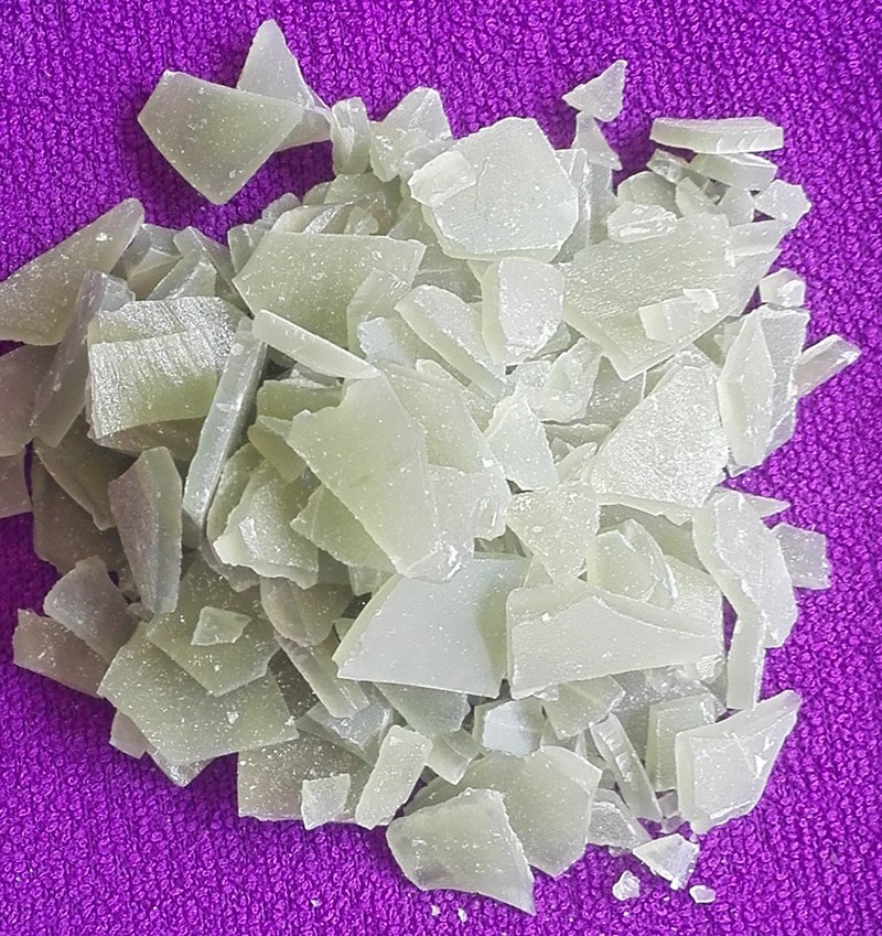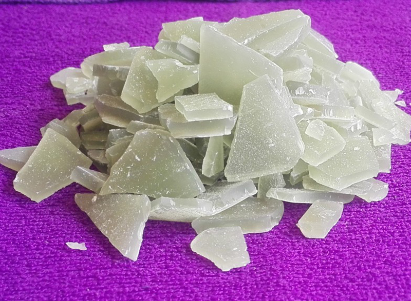 外觀與性狀:工業(yè)品為淺綠色/淡藍(lán)色片狀,會(huì)因低價(jià)鐵鹽被氧化偶爾使表面發(fā)黃。